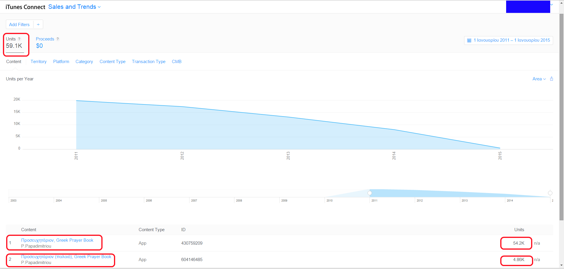 Το Προσευχητάριον στο iTunes (iOS / iPhone / iPad) έφθασε αισίως τις 54,2k και 4.86k μονάδες (μοναδικές εγκαταστάσεις), ήτοι περίπου 59,000. Δόξα τῷ Θεῷ μας!