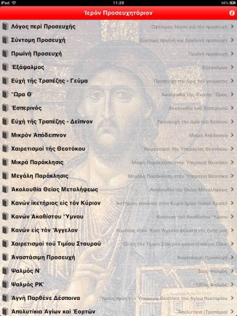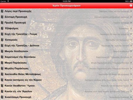 Τὸ πρῶτο Ἑλληνικὸ Προσευχητάριο γιὰ κινητὰ τηλέφωνα καὶ συσκευές (ἀπό τίς 8 Ἀπριλίου 2011). Περιέχει βασικὲς προσευχὲς τῆς ἡμέρας γιὰ κάθε Ὀρθόδοξο Χριστιανό: Πρωϊνὴ προσευχή, Ἑξάψαλμο, Εὐχές τῆς Τραπέζης, Μικρὸν Ἀπόδειπνον, Χαιρετισμοὺς στὴν Ὑπεραγία Θεοτόκο, Μικρὴ Παράκληση. Ἐπίσης περιέχει καὶ κατάλογο μὲ τὶς Νηστείες τοῦ Ἑνιαυτού.